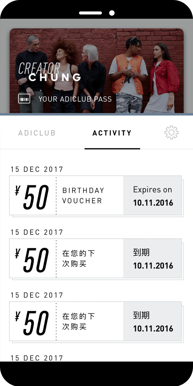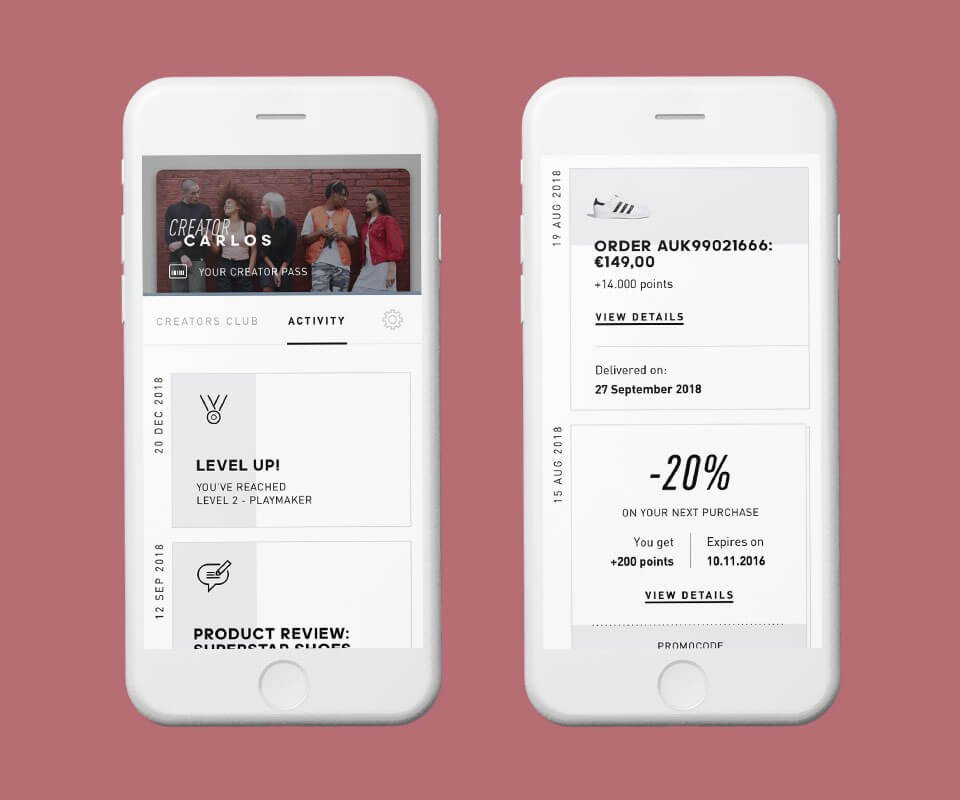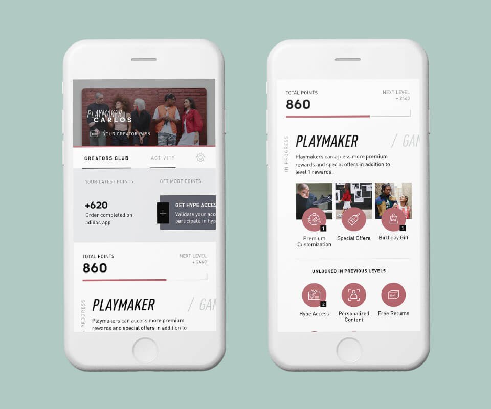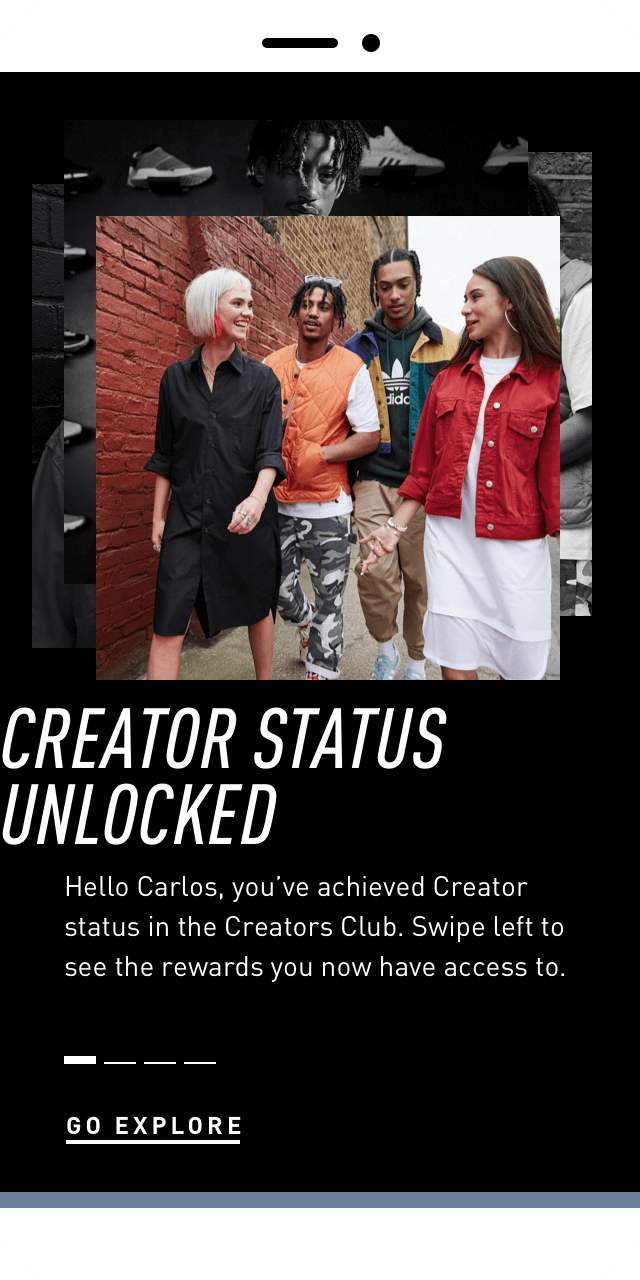 Creators Club is a membership programme based on tiers that the user achieves by purchasing adidas products or by accomplishing certain tasks (writing reviews, completing the profile, verifying the account…).