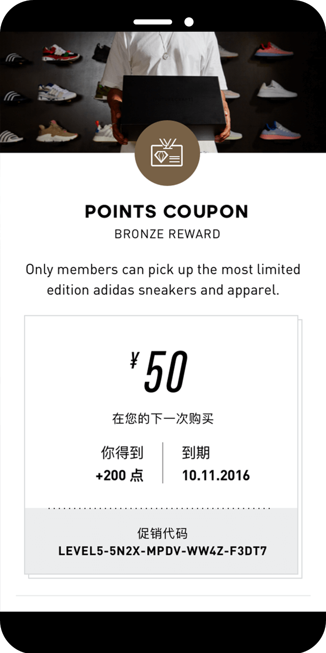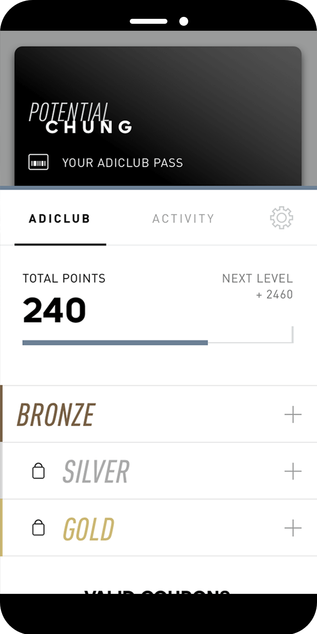 The whole app is based on system points that allow you to get benefits and reach the next tier where you can unlock more rewards. It is integrated into the existing adidas app an that is why it follows ithe same style